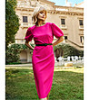 Rochie ciclamă cu mâneci bufante