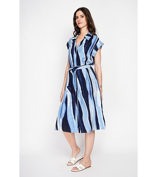 Le jardin du Lin Rochie cămașă albastră cu curea Rochie cămașă cu lungime sub genunchi.
