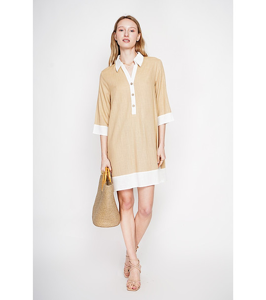 Le jardin du Lin Rochie cămașă bej cu nasturi CAMEL Rochie cămașă dreaptă, cu lungime peste genunchi.
