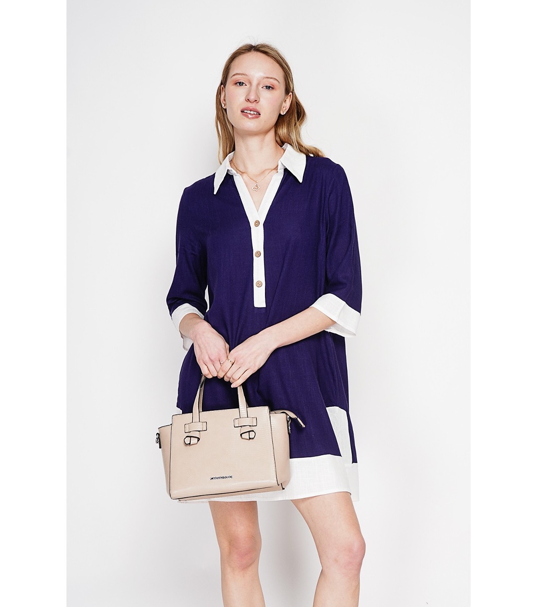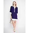 Rochie cămașă de damă, albastru închis, cu detalii contrastante