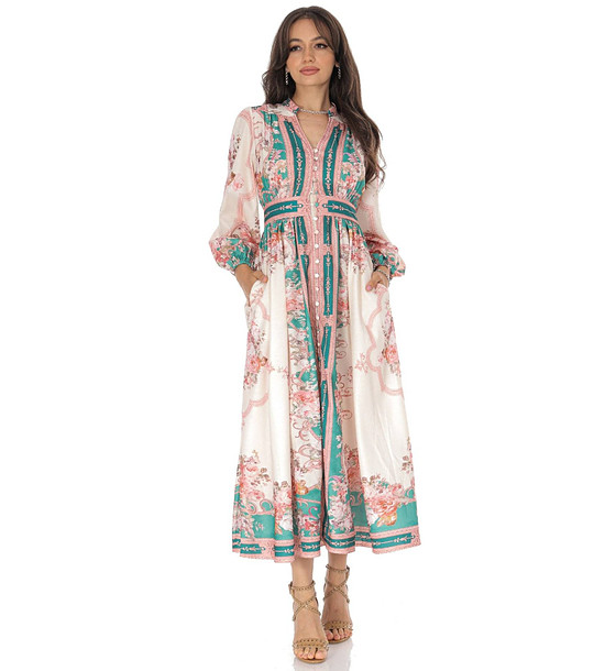 Roh Rochie crem, piersică și verde cu imprimeu Viana Decolteu în V