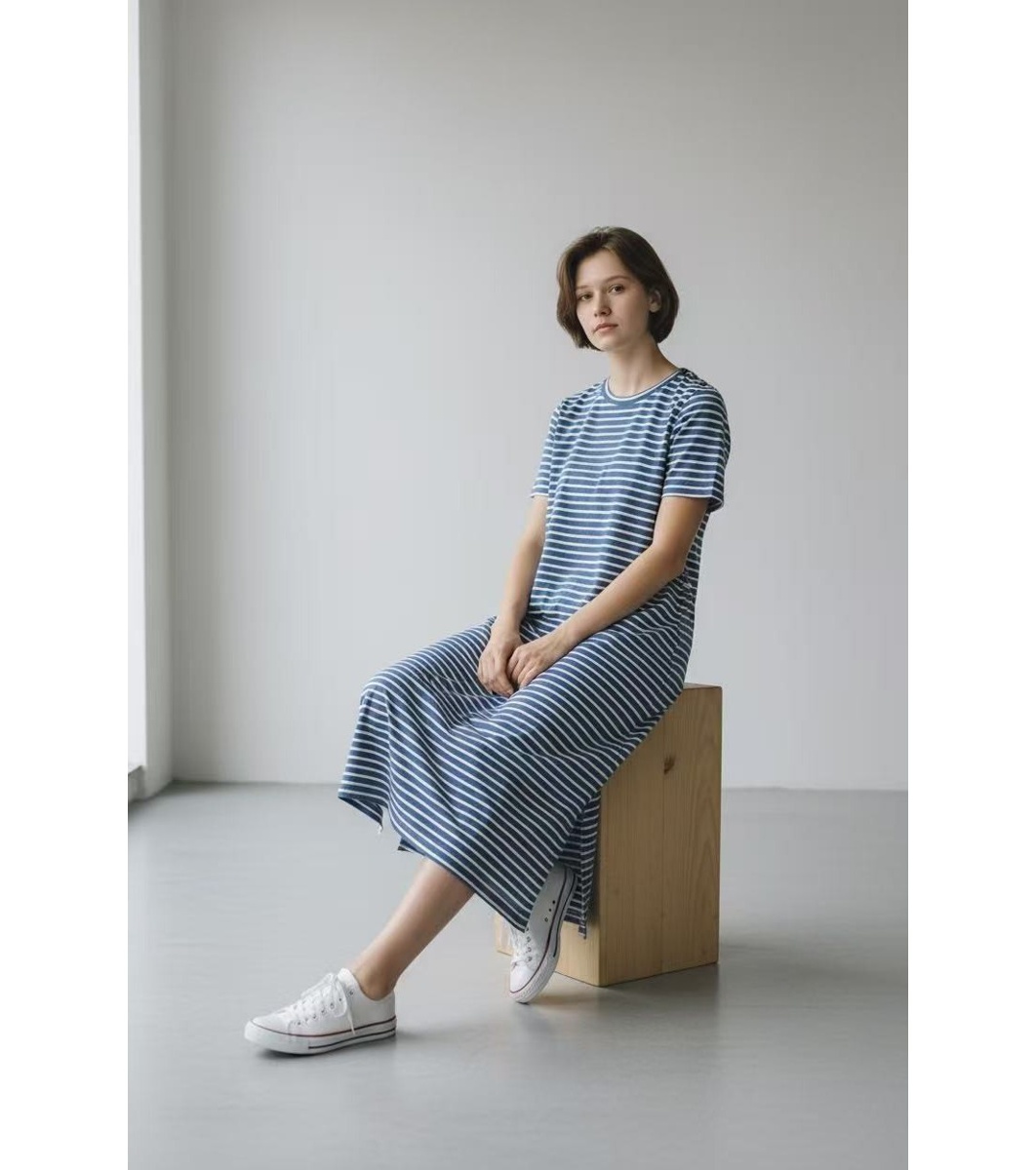 Assuili Rochie cu dungi în albastru ROYAL Rochie lungă cu croială dreaptă.