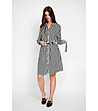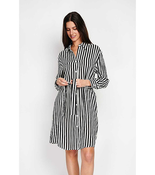 Rochie cu dungi în negru și verde din in și mătase