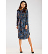 Awama Rochie cu imprimeu albastru și maro Guler clasic