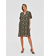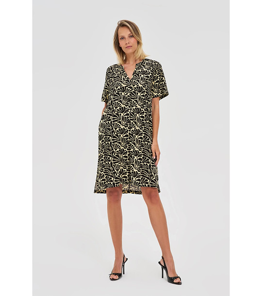 Moodo Rochie cu imprimeu negru și ecru Decolteu în V
