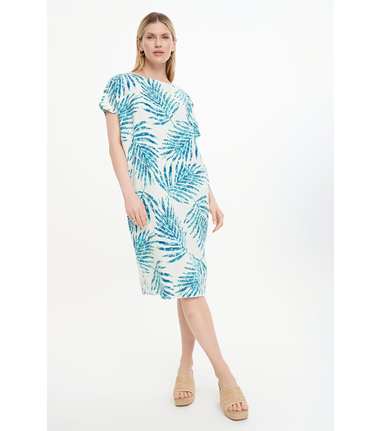 Rochie cu imprimeu tropical, cu conținut ridicat de in