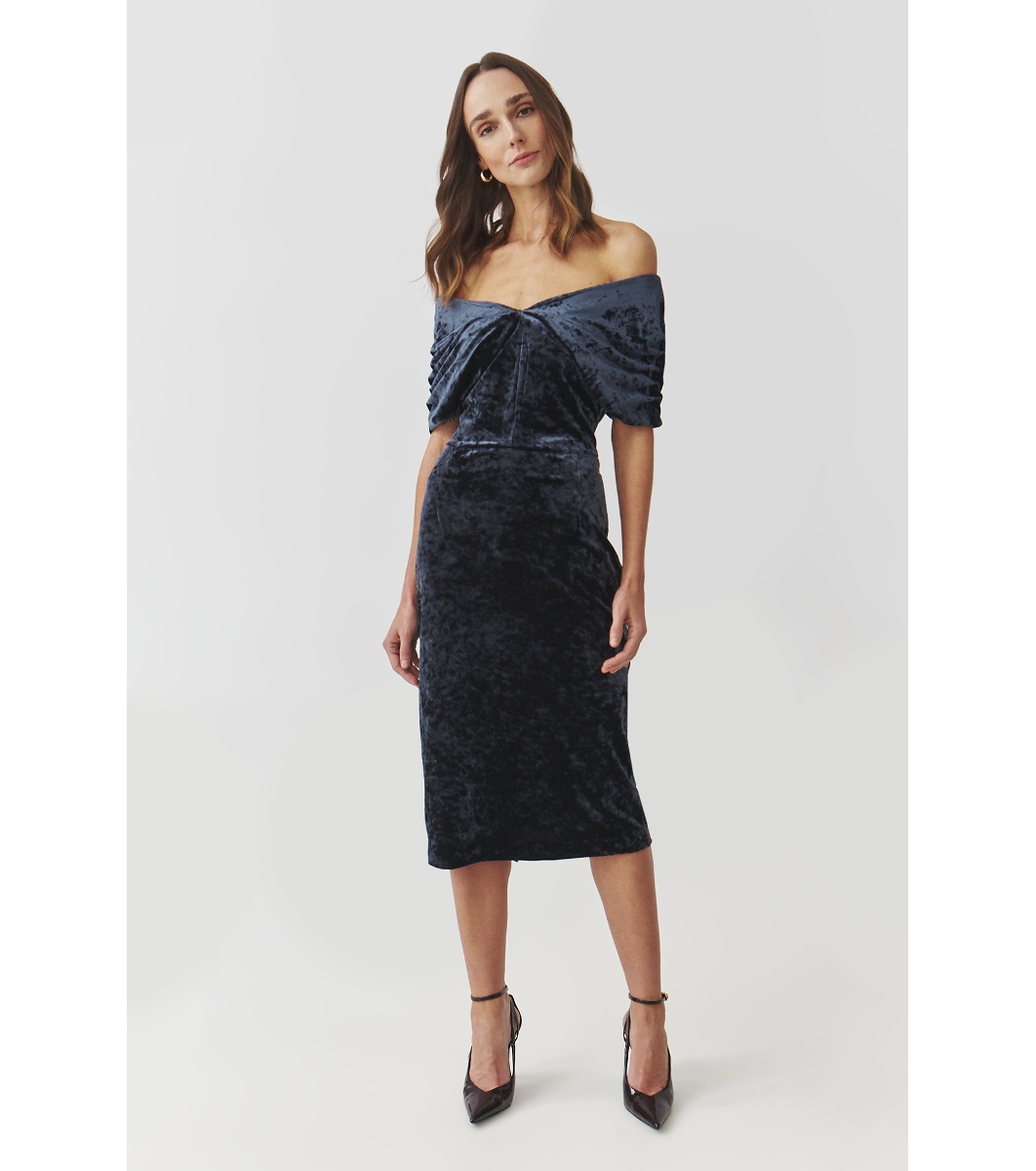 Rochie de catifea albastru închis Aksa