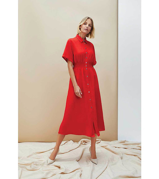 Moodo Rochie de culoare măsline cu nasturi Guler clasic