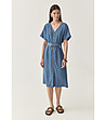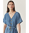 Rochie din denim albastru cu nasturi și curea din lyocell Jaya