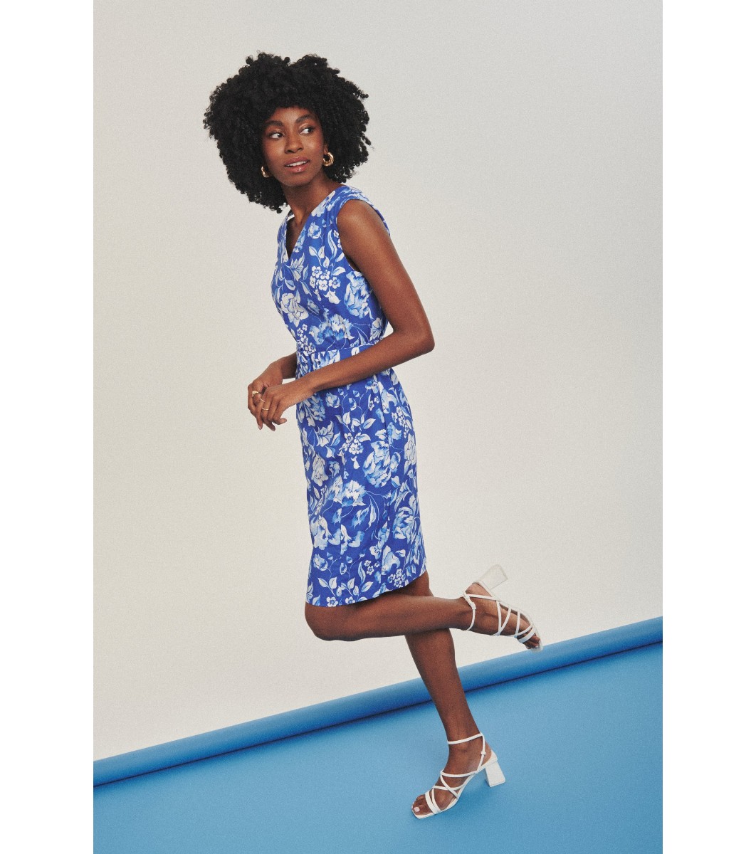 Greenpoint Rochie elegantă albastră cu imprimeu floral Decolteu în V