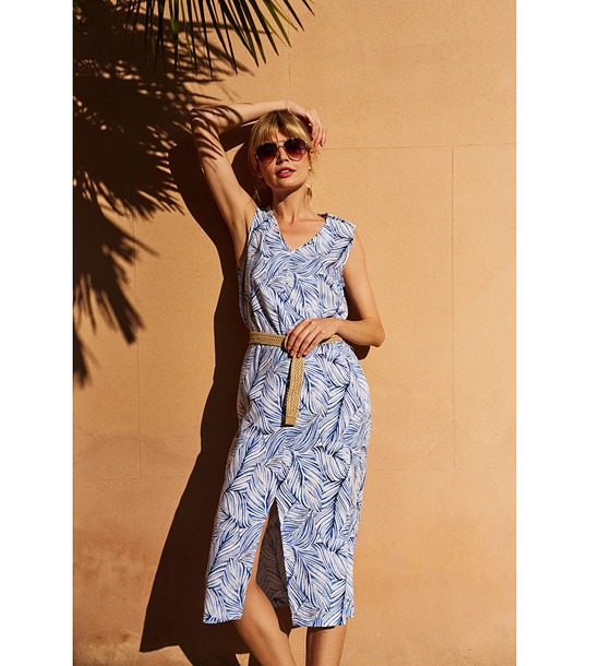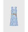Rochie fără mâneci cu imprimeu albastru și alb