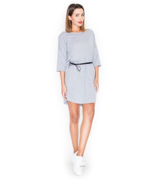 Rochie gri din bumbac cu curea