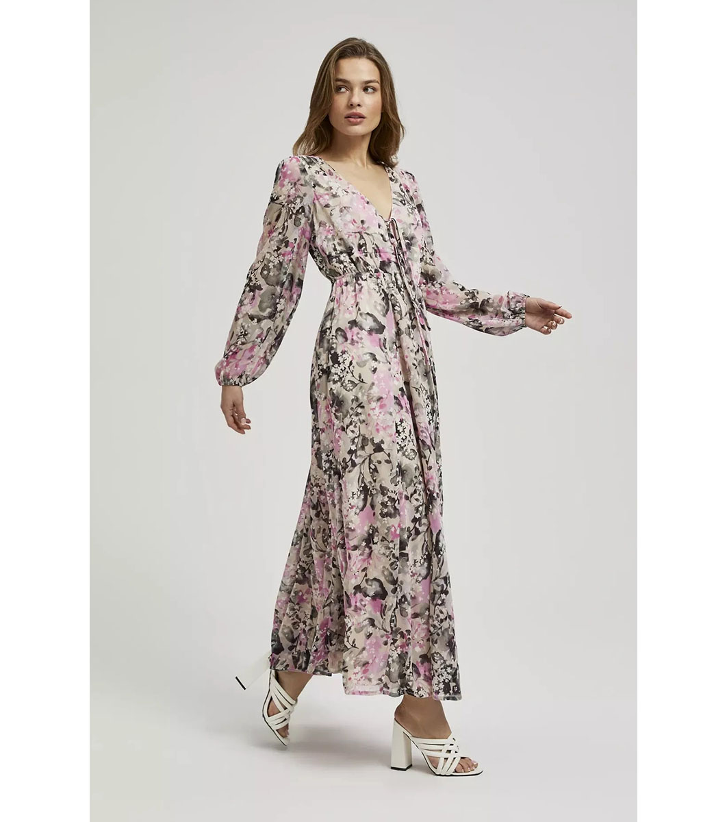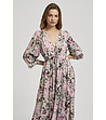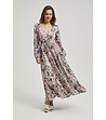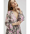 Moodo Rochie gri si roz cu imprimeu floral Bernie Decolteu în V cu cravată