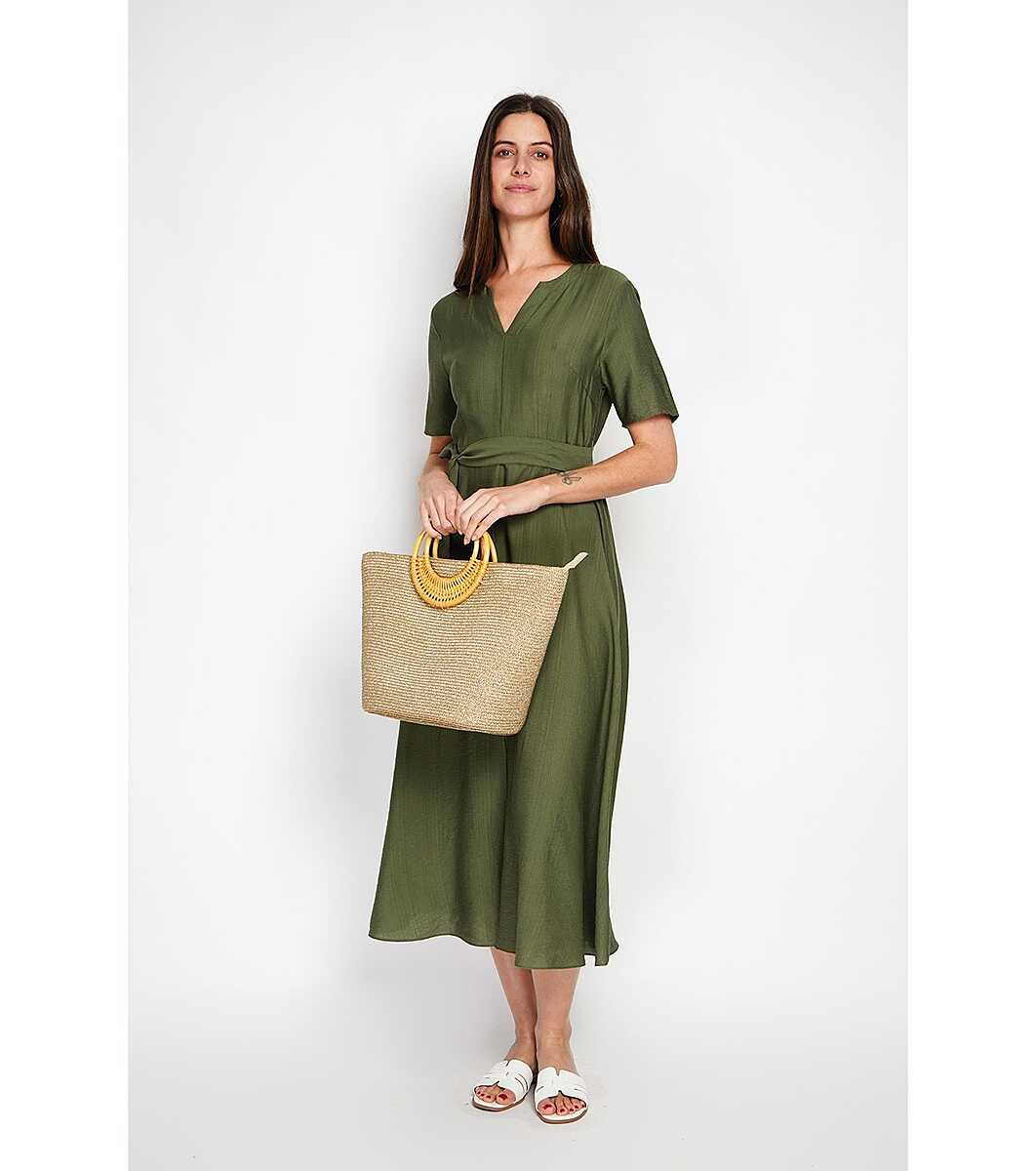 Assuili Rochie kaki cu conținut ridicat de in Decolteu în V
