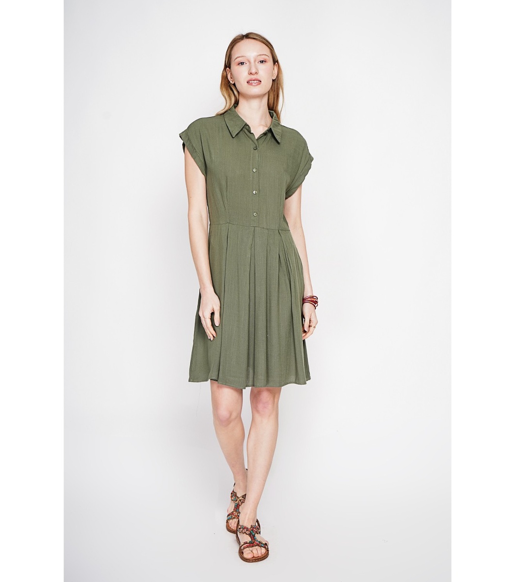 Assuili Rochie kaki pentru femei cu mâneci scurte KAKI Rochie scurtă tip cămașă cu guler și mâneci scurte.
