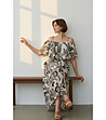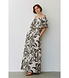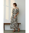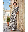Rochie lungă de damă cu imprimeu și umeri descheiați