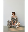 Imprimeu integral cu motive florale și ornamentale.