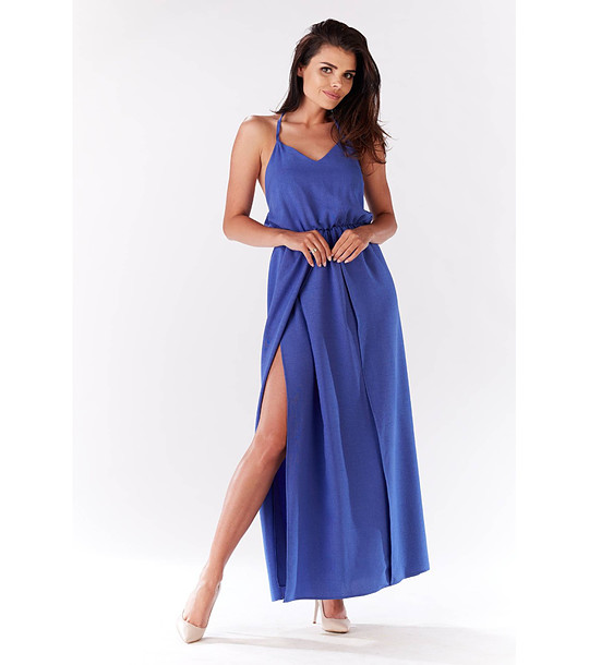 Infinite you Rochie lungă de vară albastră Decolteu în V