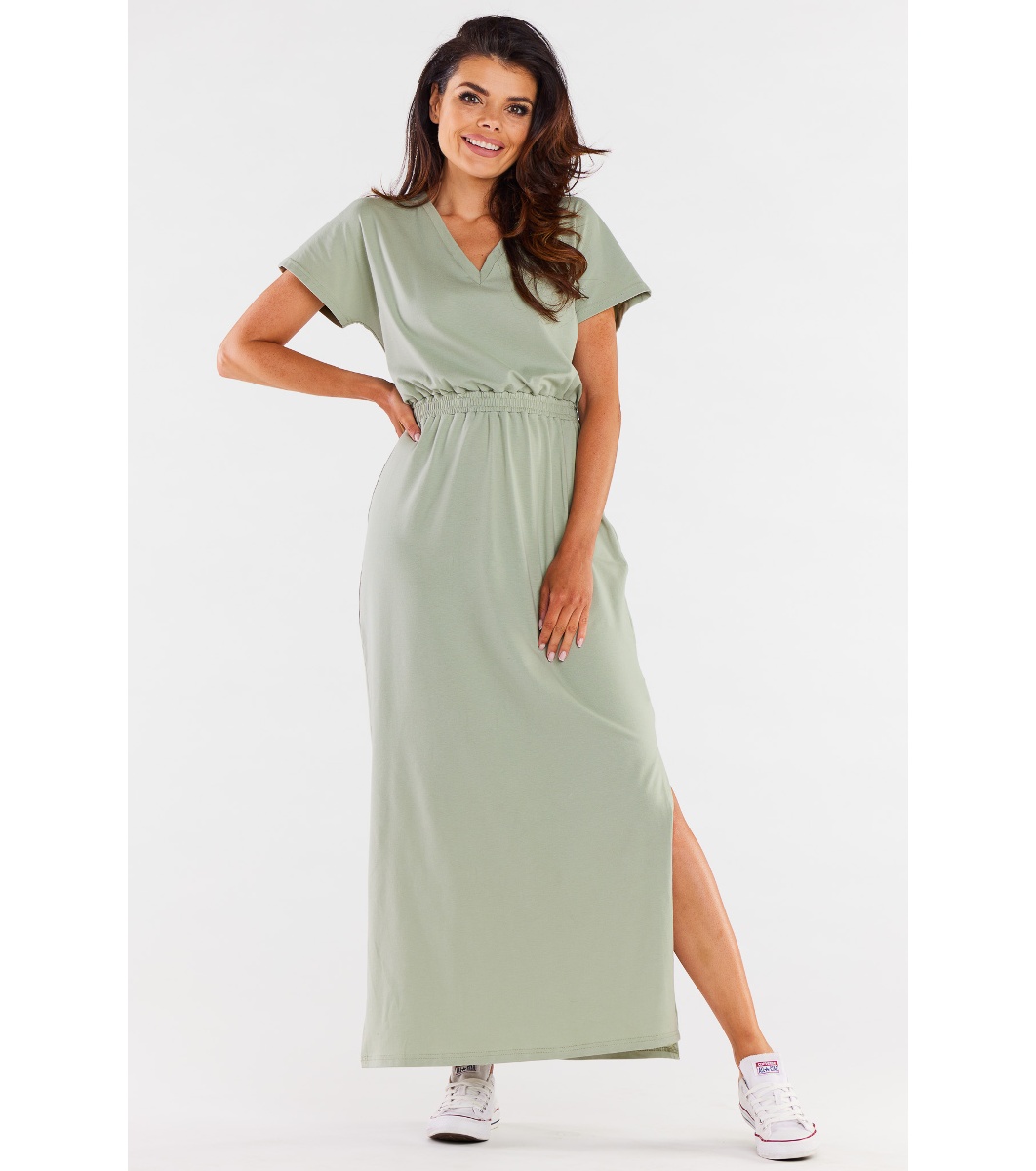 Infinite you Rochie lungă de vară din bumbac, de culoarea mentă Decolteu în V