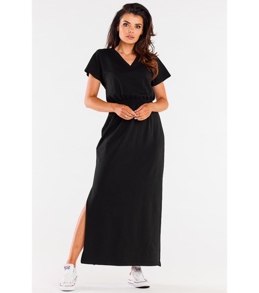 Infinite you Rochie lungă de vară neagră din bumbac Decolteu în V