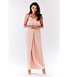 Rochie lungă de vară roz pudrat, cu spatele gol