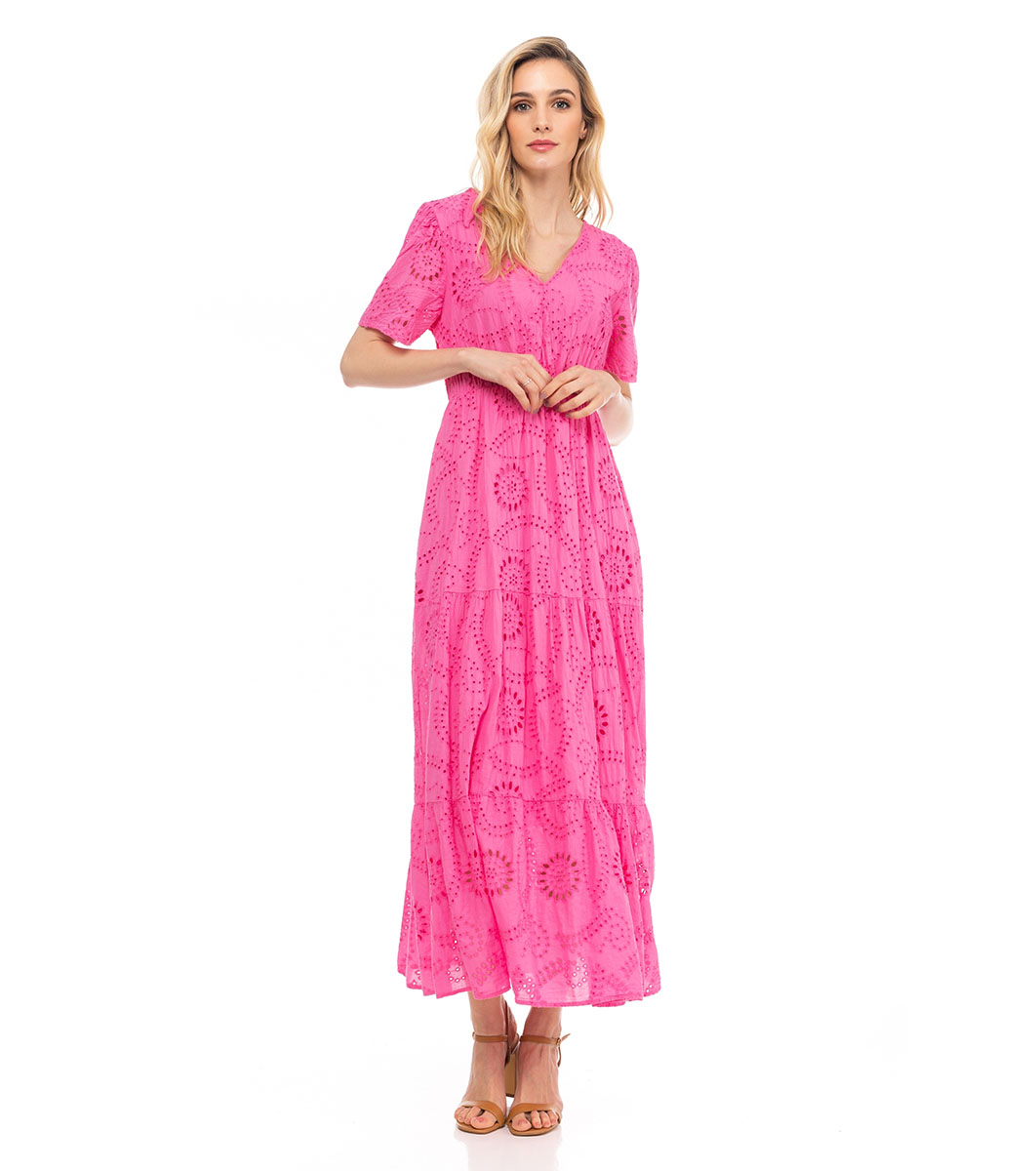 Rochie lungă din dantelă englezească din bumbac roz