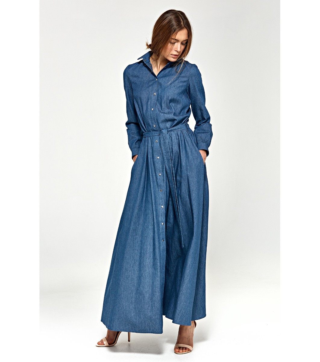 Nife Rochie lungă din denim de bumbac Model supradimensionat