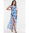 Rochie lungă din șifon în alb și albastru deschis Elif
