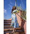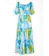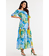 Rochie lungă din șifon în albastru, alb, galben și verde Ohara