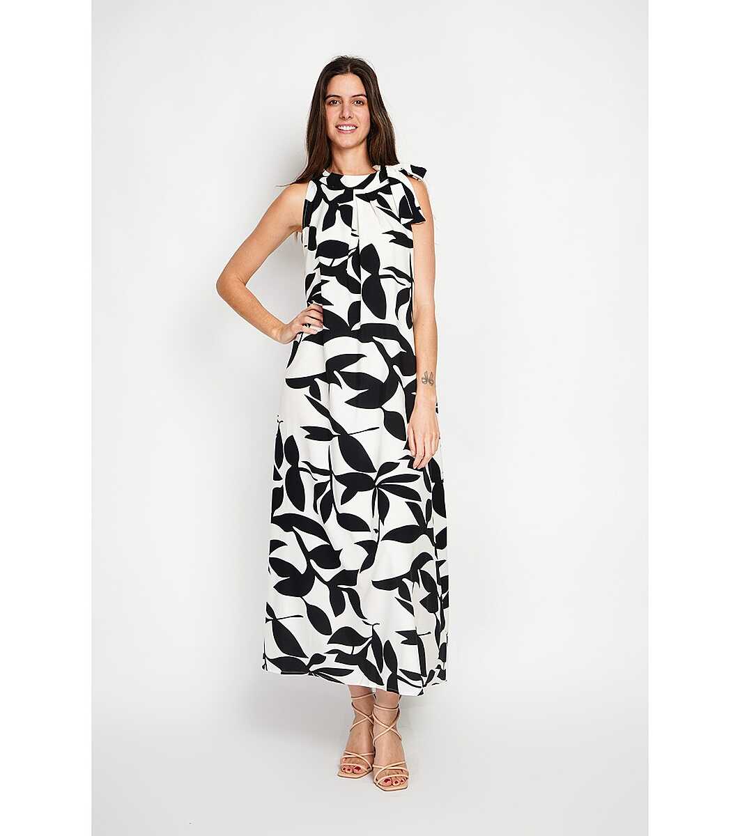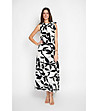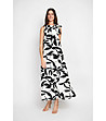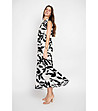 Rochie lungă ecru cu imprimeu negru