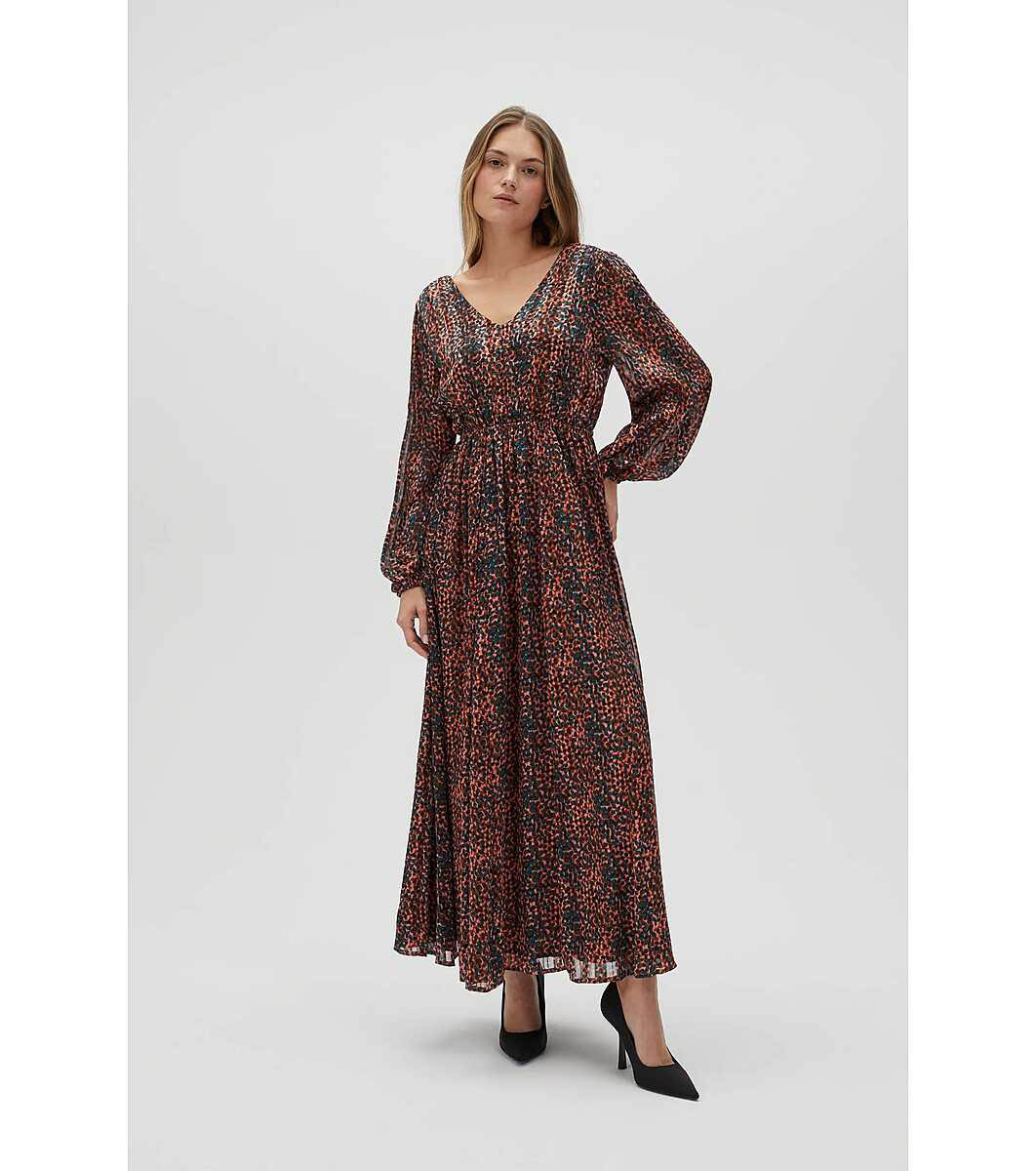 Moodo Rochie lungă maro cu imprimeu Decolteu în V