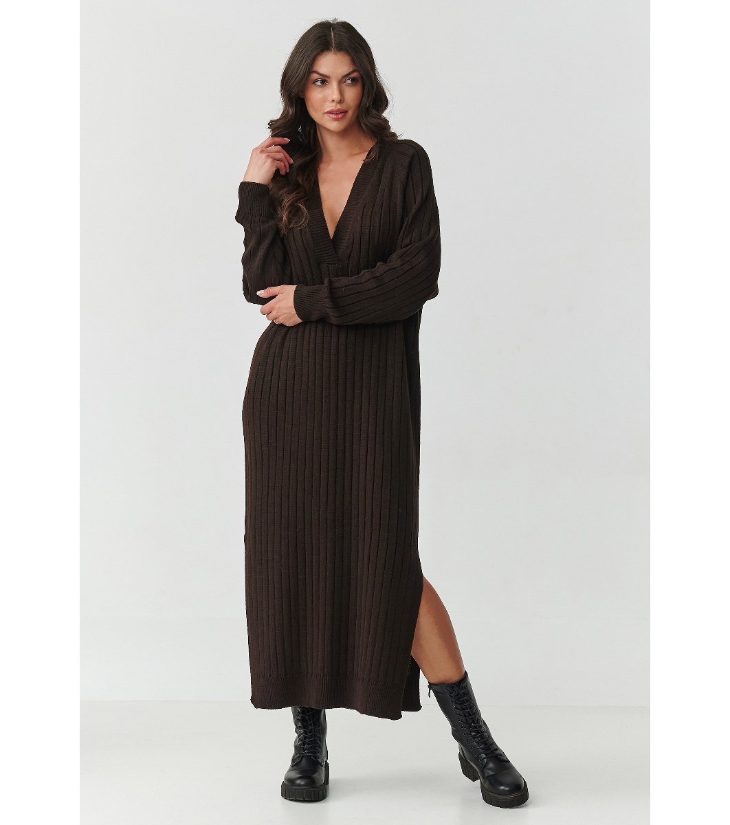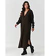 Makadamia Rochie lungă maro tricotată Decolteu în V