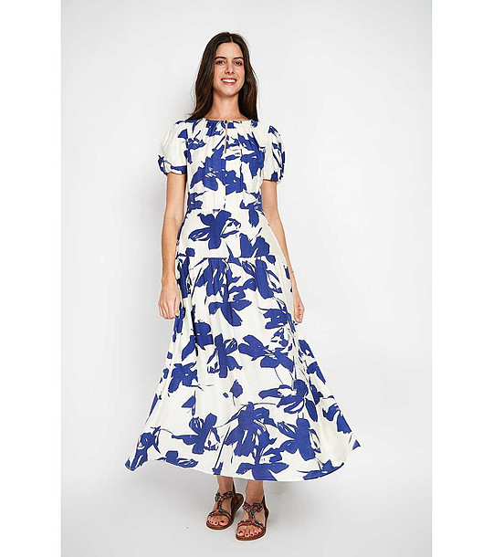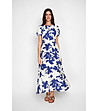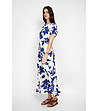 Rochie lungă în alb și bleumarin