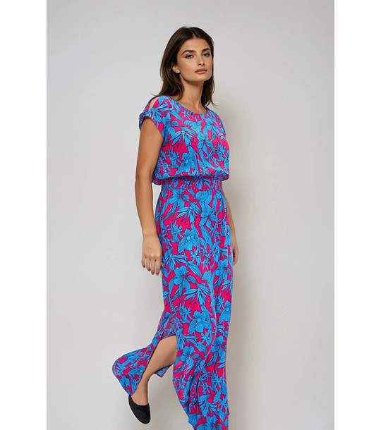 Moodo Rochie lungă în albastru și ciclam Decolteu rotund