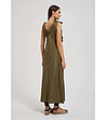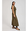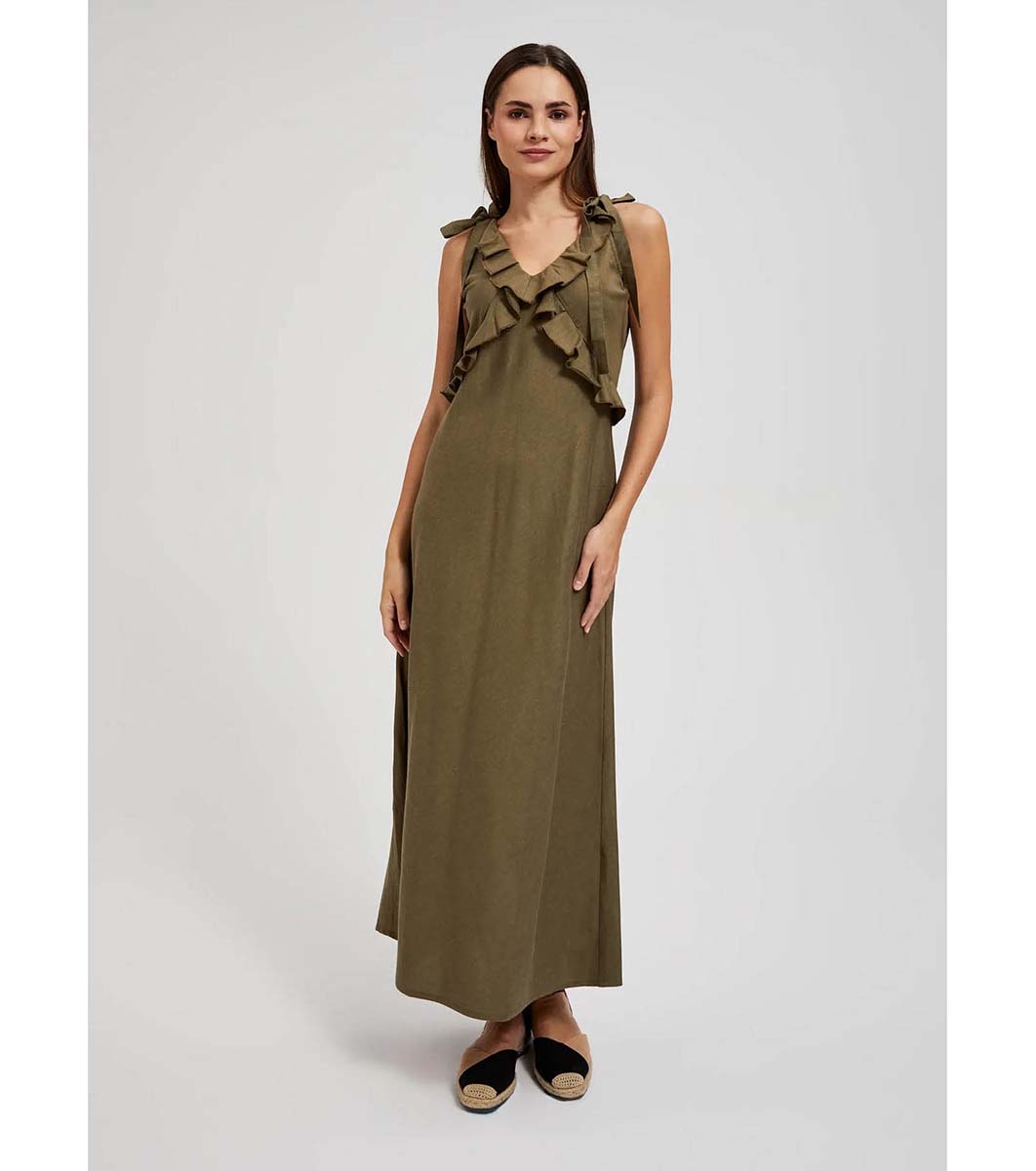 Moodo Rochie lunga de culoare masline cu bucle Klea Decolteu în V