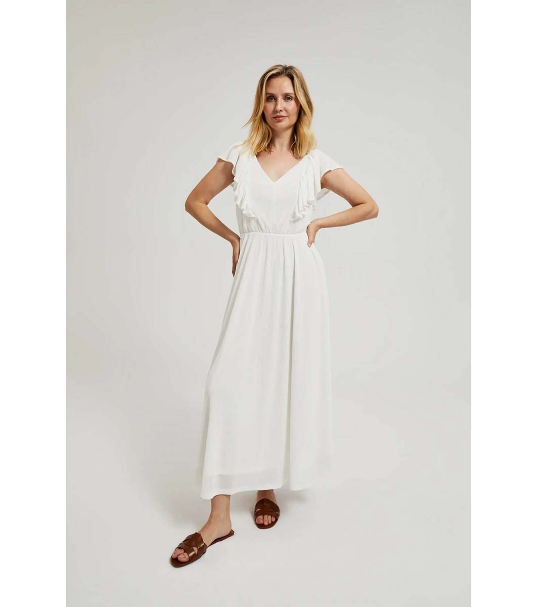 Moodo Rochie lunga in alb cu bucle Klea Decolteu în V