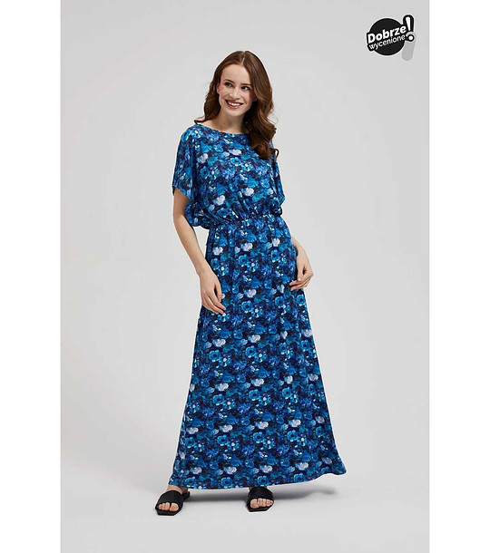 Moodo Rochie lunga in nuante de albastru cu imprimeu Daphie Gât de barcă