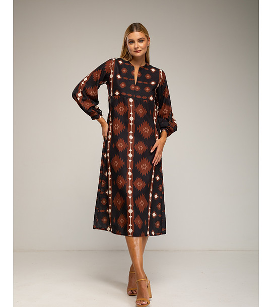 Tantra Rochie maro cu imprimeu etnic Decolteu în V