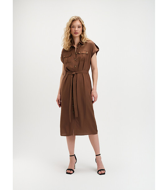Top Secret Rochie maro cu nasturi și curea Lungime midi.