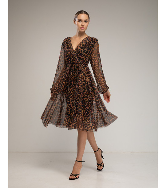 Tantra Rochie maro din tul cu imprimeu animal Decolteu în V
