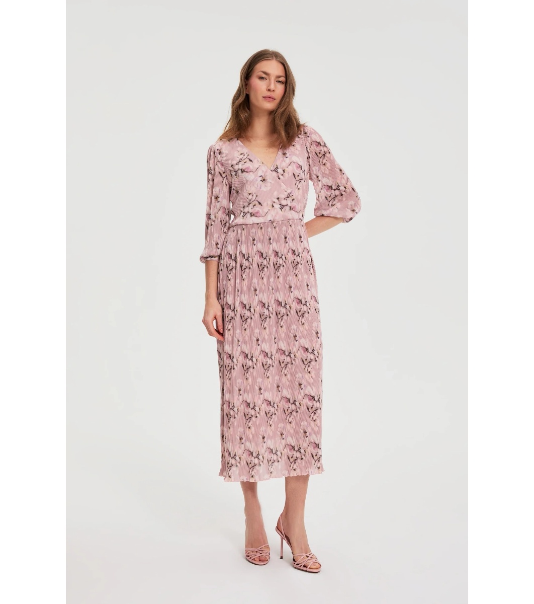 Moodo Rochie maxi roz cu imprimeu floral L-SU-4922 Rochie de damă, lungime până la gambă.