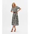 Rochie midi alb-neagră cu imprimeu floral