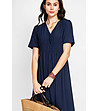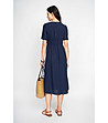Rochie midi bleumarin din in și bumbac