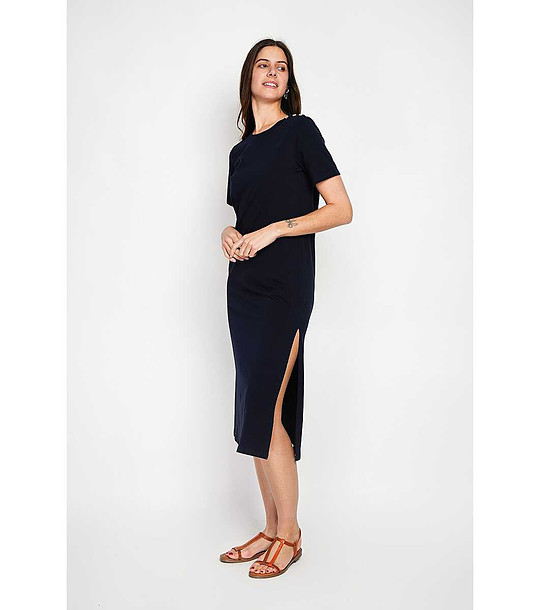 William de Faye Rochie midi bleumarin din in si bumbac Decolteu rotund