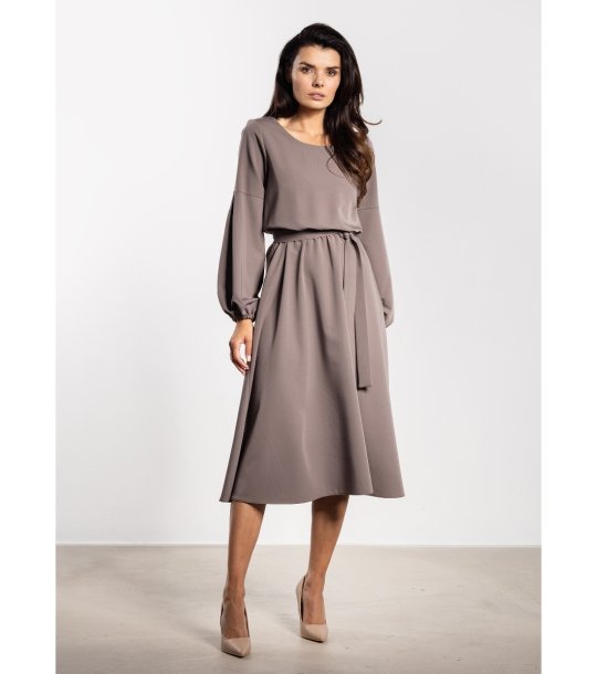 Awama Rochie midi de culoare taupe cu curea Zena Rochie midi cu lungime sub genunchi și o siluetă lejeră.