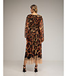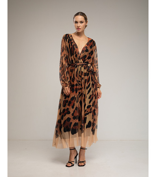 Rochie midi din tul maro cu imprimeu animal