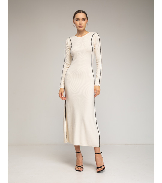 Tantra Rochie midi ecru cu garnitură neagră Tricotată la mașină