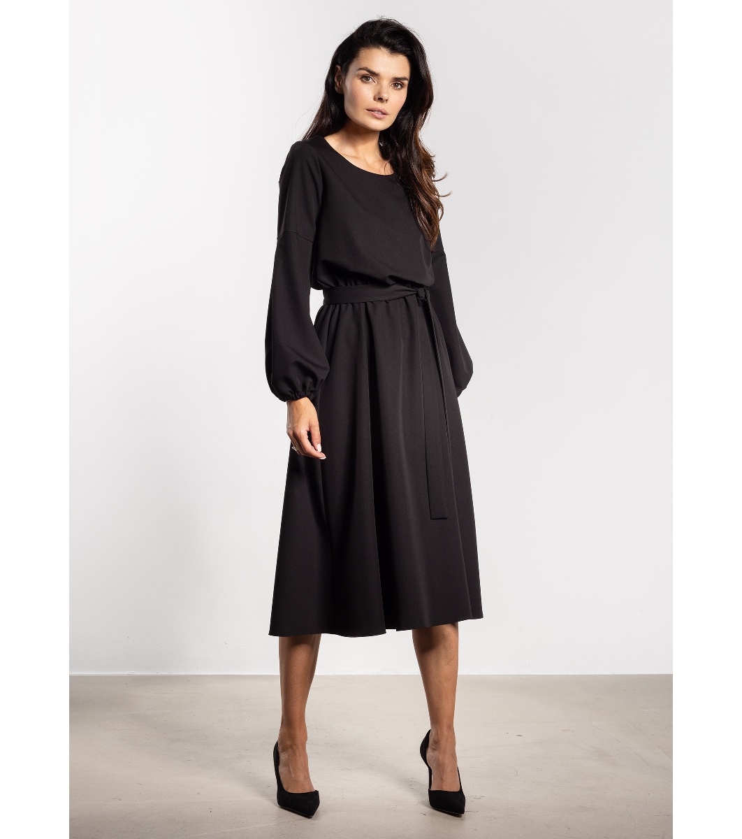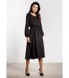 Rochie midi cu lungime sub genunchi și o siluetă lejeră.