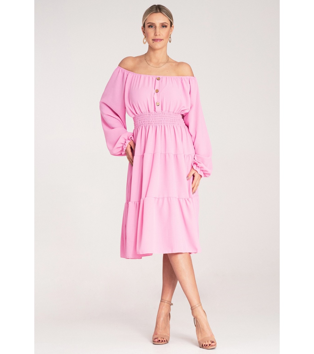 Rochie midi roz deschis, supradimensionată, Larisa