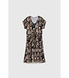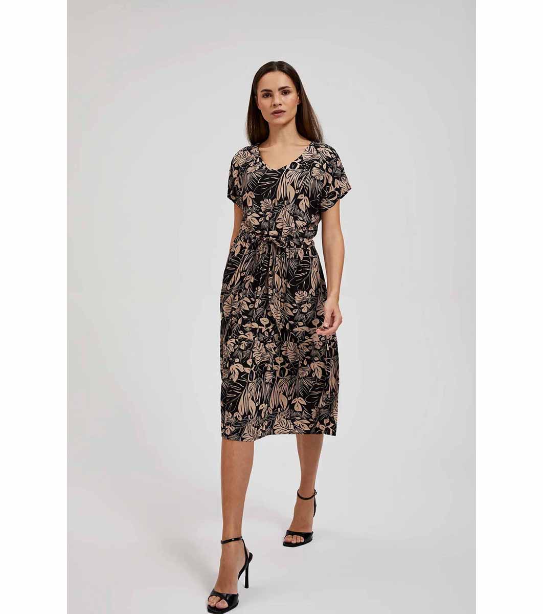 Moodo Rochie în negru și bej cu imprimeu Tonia Decolteu în V